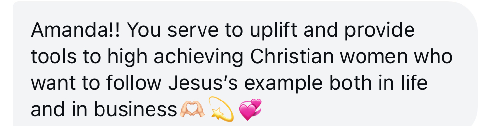 Amanda now specializes in helping modern day Christian women regain their sense of confidence, peace, and joy as they systemize their business so that they can live their dream freedom-filled life.